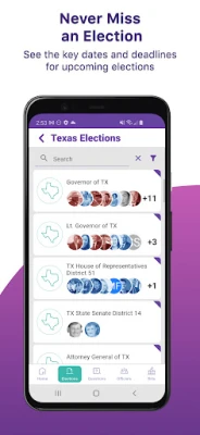 An exciting tool that takes the guesswork out of voting and allows you to prepare to participate in elections at the local, state and federal level! You can see all your upcoming elections and candidates, participate in polls, and even figure out who to vote for by determining who shares your beliefs.