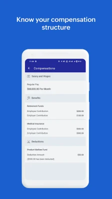 ★ Compensation Details: View your overall pay structure - salary and wages, benefits, and deductions on the go.