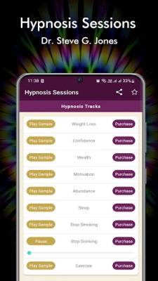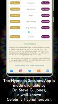 The hypnosis sessions app is made available by Dr. Steve G. Jones, a well-known celebrity hypnotherapist. Dr. Steve has created numerous recordings and publications about hypnosis, self-awareness and the Law of Attraction.