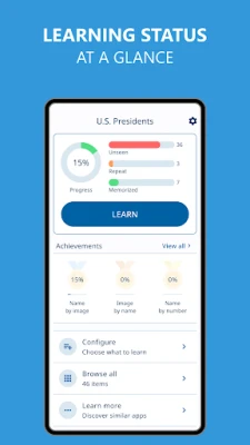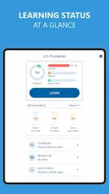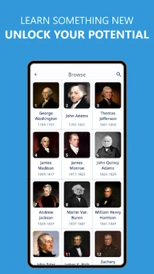 Dive into a captivating journey of discovery through the history of the United States of America. Effortlessly learn to recognize all U.S. Presidents. Whether it's their names, faces, times, or numbers – you'll master it all!