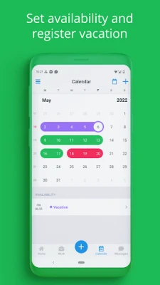 Effortlessly manage your availability, log vacations, accept or decline shift requests, and create shifts with ease. The calendar provides a comprehensive overview of all your activities, allowing you to stay organized and on top of your schedule.