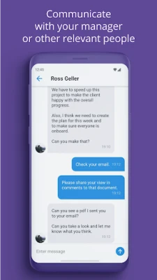 Stay connected with your manager and other contacts using the in-app messaging module. Seamlessly communicate within the app for effective work coordination.