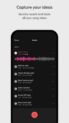 - Collaborate with creators by uploading & sharing audio, lyrics, notes and voice memos.
